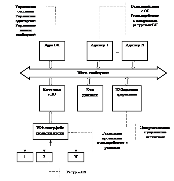 Шина сообщений - обеспечивает интерфейс взаимодействия компонент ВЛ;