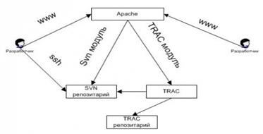 Основой для Trac'а является SVN репозиторий. Один из самых распространенных методов использования TRAC