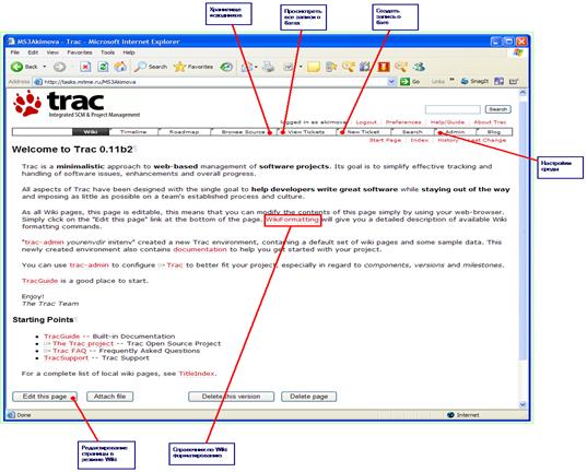 Рисунок 6 - Интерфейс системы Trac