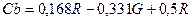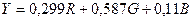 Далее, в каждом блоке от 3-х матриц отсчетов для красной (R ), зеленой (G ) и синей (B ) компонент изображения, осуществляют переход к 3-м матрицам, представляющим яркостную (Y) и две цветностных (Cb) и (Cr) компоненты изображения. Компоненты (Cb) и (Cr) являются аналогами цветоразностных сигналов в хорошо известной совместимой системе цветного телевидения SECAM. В отличие от компонентов (R ),(G ),(B ) компонент (Y) включает в себя только информацию о яркости пикселов, а компоненты (Cb) и (Cr) содержат информацию только об их цвете и насыщенности этого цвета. Поскольку острота зрения человека при наблюдении чисто хроматических изображений (purechromatic) существенно ниже, чем при наблюдении изображений, имеющих только яркостный контраст (achromatic), переход к компонентам (Cb) и (Cr) выгоден, так как позволяет при их кодировании использовать меньшее количество отсчетов в блоке и за счет этого получить дополнительное сжатие. Этот переход (перекодирование) осуществляется следующим образом