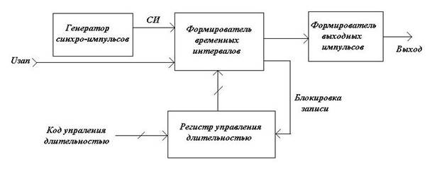 Для формирования задержек необходимой длительности, требуется отсчитывать нужное количество эталонных импульсов и сравнивать его с числом, задающимся входным кодом. Если числа совпадают, то на выходе устройства появляется калиброванный импульс.