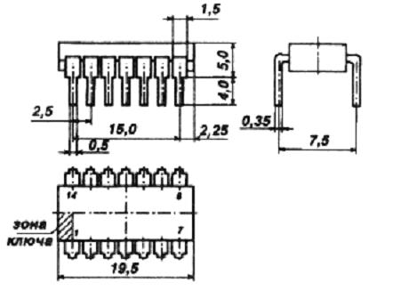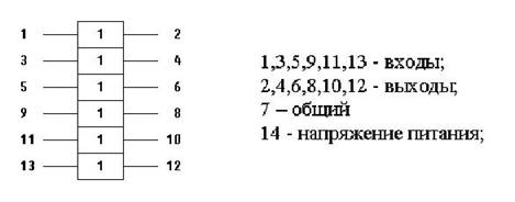 Микросхема представляет собой шесть буферов без инверсии с открытым коллектором.