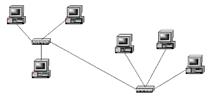 Проверим, выполняется ли условие допустимой нагрузки ЛВС (домена колизий): Pн ≤Pethernet=0.35, 8>0,35 => необходимо сделать логическую структуризацию сети. Pдк =1*16/100=0,16<0.35, в одном сегменте расположен один ПК.