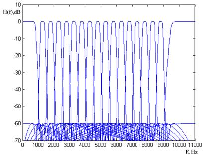 Рисунок 9.2 - АЧХ гребенки фильтров