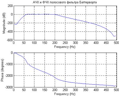 Рисунок 9.4 - АЧХ и ФЧХ полосового фильтра Баттерворта