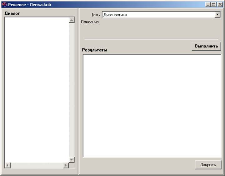 Выбираем цель «Диагностика» и нажимаем выполнить. Открывается окно диалога: