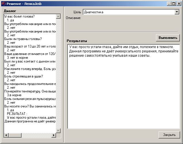 4. Экспертная система проста, что позволяет работать с ней несмотря на головную боль.