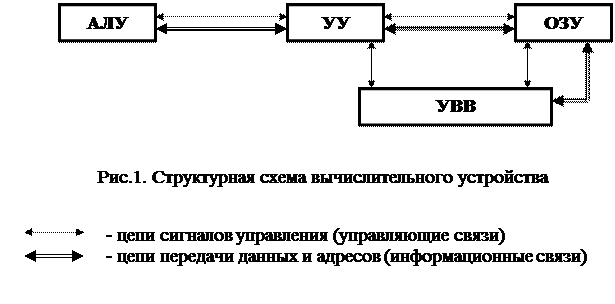 · УУ – устройство управления. Организует процесс выполнения программ.