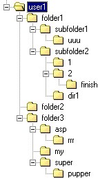 Постановка задачи: На Web-сервере есть каталог, например: C:\InetPub\wwwroot\user1. Пусть данный каталог имеет несколько вложенных каталогов и набор файлов в этих каталогах. Примерная структура папок представлена на Рис. 1.