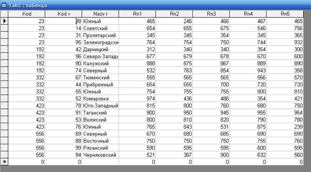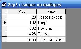 Поле «Kod» (Код города) - ключевое. Через него будет связь со второй таблицей.