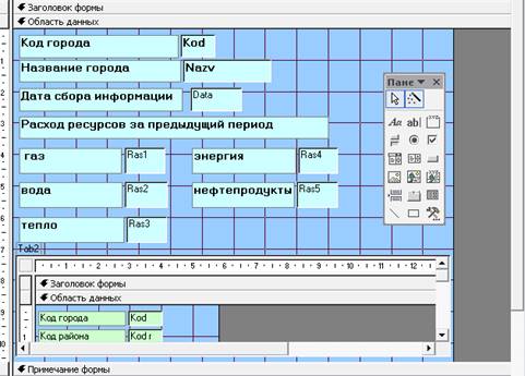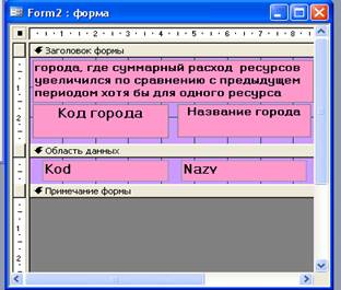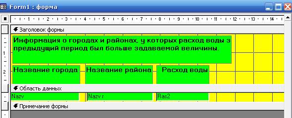 Для вывод на формы используем конструктор, на котором формируем необходимые текстовые поля с привязкой в полям таблиц и метками для подписи данных.