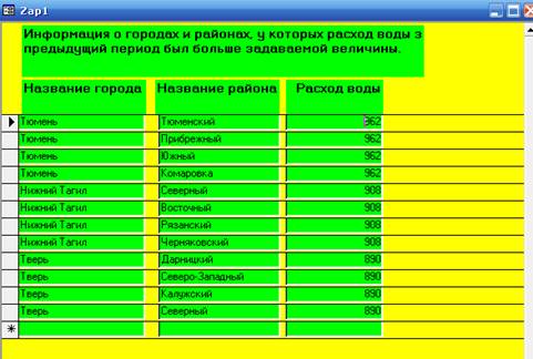 1) Вывести города и районы , у которых расход воды за предыдущий период был больше задаваемой величины