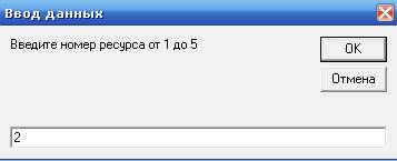 res = InputBox("Введите номер ресурса от 1 до 5", "Ввод данных")