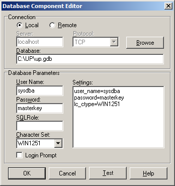 При помощи IBDatabase приложение подключается к базе данных с использованием учетной записи администратора: SYSDBA.