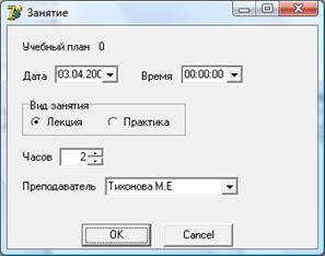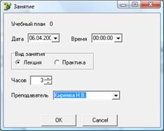 Сведения об учебном плане носят справочный характер и не доступны для редактирования. При добавлении нового занятия ему присваивается номер учебного плана, который является текущим в таблице УЧЕБНЫЕ ПЛАНЫ.