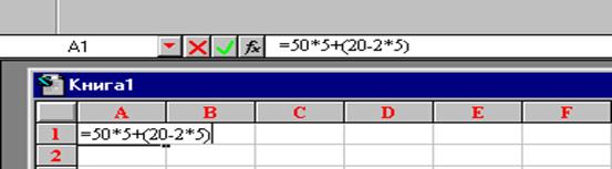1.В ячейку А1 ввести = 10*5+20*(20-2*5 )