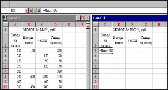 На лист 2 столбец «Сальдо на начало месяца» перенести значение столбца