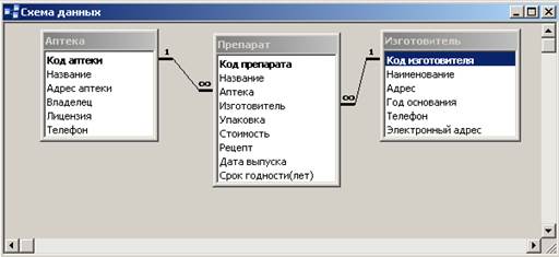 Связи между таблицами в базе данных «Аптеки-Препараты» представлены на рис. 4