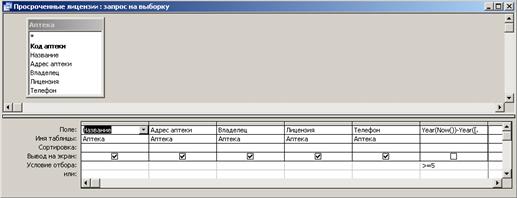 Рис. 18. Запрос на выборку о просроченных лицензиях