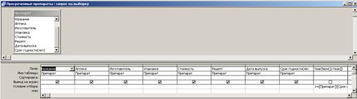 Рис. 19. Запрос на выборку о просроченных препаратах