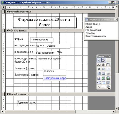 Рис. 21. Создание отчета – Сведения о старейших фирмах