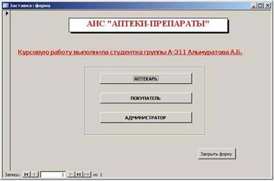 Рис. 22. Главная форма АИС «Аптеки-Препараты» и компоненты «Аптекарь»