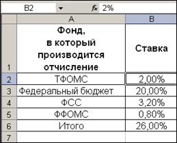 1. На рабочем листе Ставки ЕСН MSExcel создать таблицу ставок ЕСН по исходным данным (рис. 1).