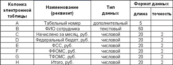 Рис. 2. Структура шаблона таблицы "Данные по сотруднику"
