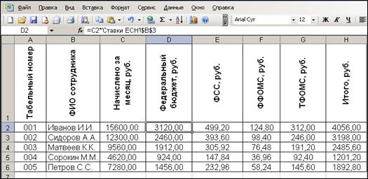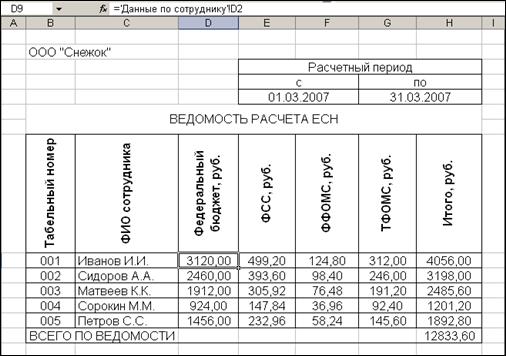 3. Организовать межтабличные связи для автоматического формирования ведомости расчета ЕСН (единого социального налога ) по предприятию.
