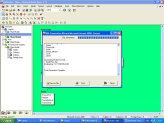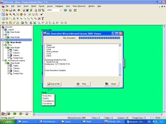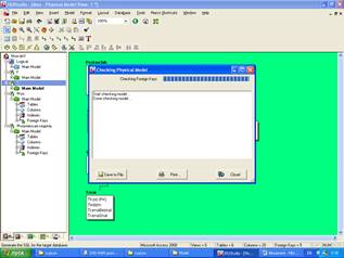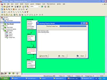 Для нашего примера в качестве целевой платформы будущей БД выберем MicrosoftAccess 2000. Настройки, предлагаемые Мастером по умолчанию (индексы, правила проверки и т. д.), можно оставить без изменения. По окончании генерации физической модели формируется отчет с информацией об ошибках, обнаруженных в процессе создания модели.