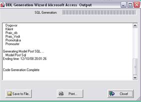 6. Выбирается вариант генерации исходного текста SQL или генерации объектов БД. Генерация SQL-скрипта позволяет создать БД в любое другое время.