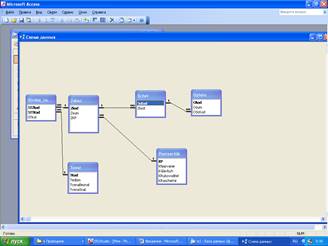 После генерации БД на экран выводится отчет о создании БД (рис. 4). Следует изучить все сообщения об ошибках генерации. Наиболее распространенная ошибка – задание типов данных, не поддерживаемых выбранной платформой БД. После генерации БД работа с CASE-средством закончена. Созданная БД может быть откры-та уже непосредственно из MSAccess 2000. Следует проверить наличие всех таблиц и столбцов. Связь таблиц можно проверить, нажав кнопку Схема данных (рис. 5).