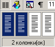 1) Для разбиения текста на столбцы его вводят обычным образом, затем выделяют и щелкают на кнопке Колонки