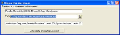 Для доступа к базе данных мы используем ADOConnection. В отличие от других способов доступа к БД в нашем случае для подключения нет возможности использовать привычные свойства DataBaseName и AliasName. При использовании технологии ADO вместо этих свойств используются строки соединения (connection string) и все параметры соединения отображаются и настраиваются именно в них. Существует два основных способа настройки строки соединения – вручную и в специальном диалоговом окне. При собственноручной настройке легко ошибиться в параметрах. И поэтому, большинство разработчиков идет по пути использования редактора строки соединения. Единственный, на наш взгляд, недостаток такого подхода – это привязка к конкретному пути к файлу базы данных. Чтобы избежать недостатков обоих подходов мы пошли по среднему варианту – для первого подключения к базе данных при разработке программы в инспекторе объектов мы использовали редактор строки соединения. И получили правильную строку. Затем, проанализировав ее содержимое, мы увидели в какой части строки хранится информация об имени и пути к файлу базы данных. Теперь, используя элементарные операции для работы со строковым типом данных в Delphi мы можем заменять эту часть строки соединения на любой другой нужный нам файл данных. Это выполняется у нас двумя способами. Первый – автоматически при запуске программы определяется текущий каталог и первое подключение осуществляется к файлу базы данных, который находится в том же каталоге, где и наша программа. Имя файла базы данных (за исключением его расширения) должно совпадать с именем программы. Реализация этого приведена на листинге 1.1. А второй способ – это возможность пользователя нашей программы подключиться к необходимому ему файлу (разумеется, структура базы данных должна совпадать) путем использования диалога выбора файла в форме настройки параметров. (см. рис.1.5, 1.6)