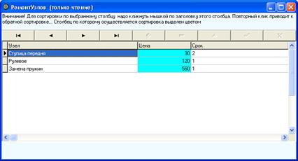 Рисунок 1.7. – Внешний вид универсальной формы при работе с таблицей РемонтУзлов в режиме просмотра.