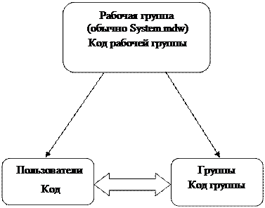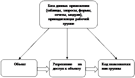 Общая структура защиты Access отображена в приложении А. Учётные записи пользователей и групп хранятся в файле рабочей группы. Разрешение на доступ к конкретным объектам сохраняются в файле базы данных.