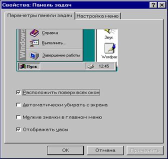 Рис. 4. Диалоговое окно Свойства: Панель задач.