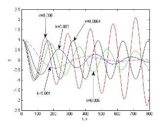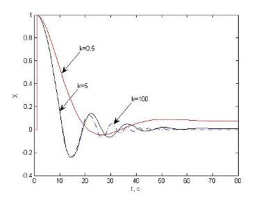 Оценим переходные характеристики системы при различных значениях k для устойчивых режимов работы.