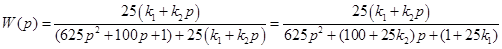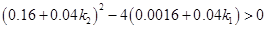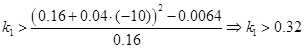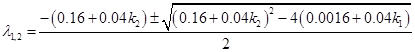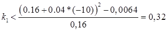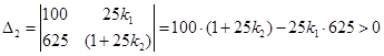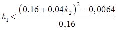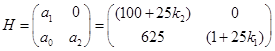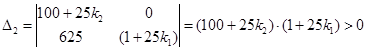 По критерию Гурвица определим диапазон значений параметра k , при которых система асимптотически устойчива (частный случай(n=2)):