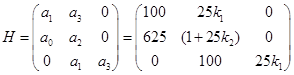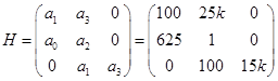 Определим предельное значение k по критерию Гурвица, при котором линейная система будет находиться на границе устойчивости.