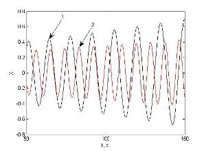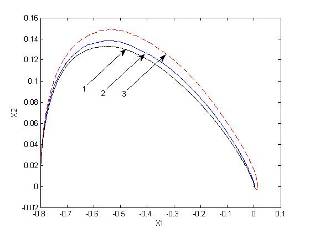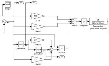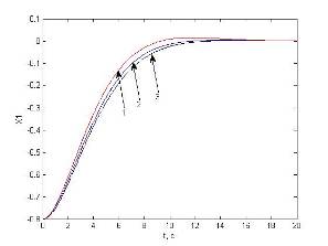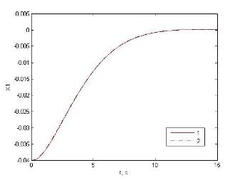 2) увеличен коэффициент С2 пропорционально-дифференциального регулятора релейной части системы для уменьшения наклона линии переключения S2 = С1 x1 + С2 x2 + d и обеспечения скользящего режима при больших отклонениях;