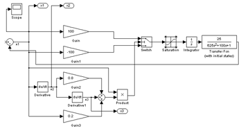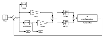 1) увеличен коэффициент С1 пропорционально-дифференциального регулятора релейной части системы для повышения быстродействия;