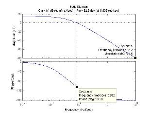 По полученным графикам можем определить частоту среза: ωc = 0.332[рад/сек].