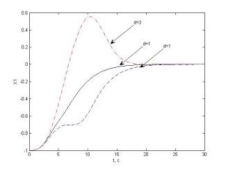 Согласно полученным данным можно сказать, что в спроектированной нелинейной СПС самый быстрый переходный процесс монотонного характера получаем при d ≈ 1.