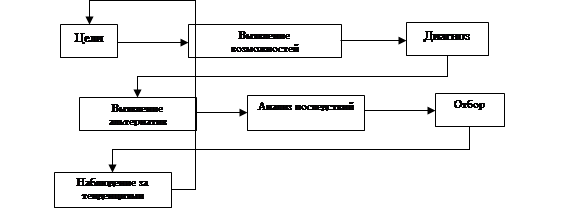 1) устанавливается постоянное наблюдение за всеми тенденциями во внешней сфере; рыночными, техническими, общеэкономическими, политическими;
