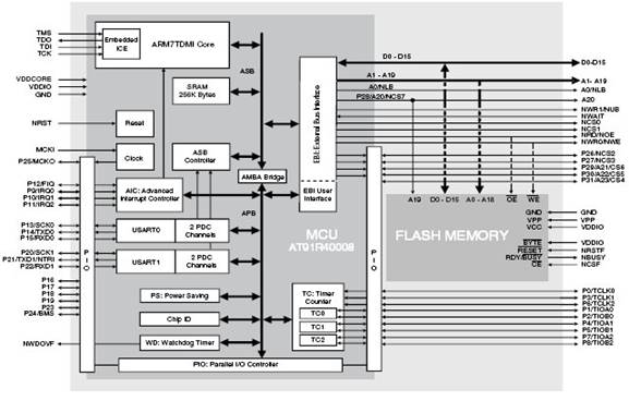 Рис. 1. Блок-схема микроконтроллера AT91FR40162S