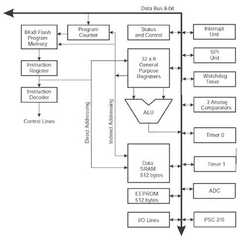 Рис. 2. Блок-схема микроконтроллера AT90PWM1