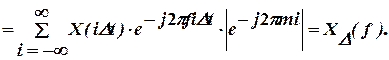 Таким образом, спектр дискрeтизованной функции Х(i Dt) получается путем периодического, с периодом 1/