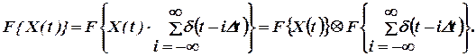 Последовательность отсчетов непрерывной функции Х(t) можно представить в виде произведения Х(t) на периодическую последовательность d-импульсов (решетчатую функцию) с периодом