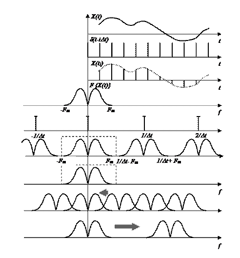 составляющих с частотами, лежащими за пределами полосы f Î (-Fm, Fm), полностью определяется последовательностью своих отсчетов в дискретные моменты времени X(ti), следующих с шагом Dt < 1/Fm.